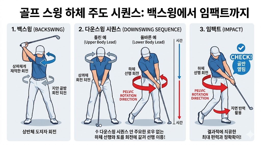 하체가 먼저 움직여야 비거리가 증가합니다.