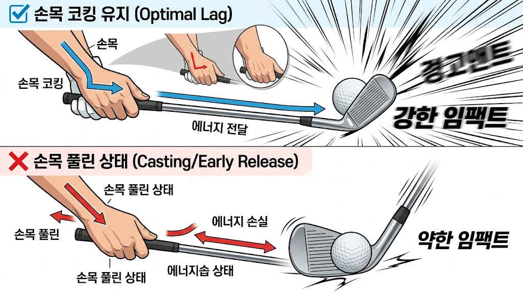 손목을 너무 빨리 풀면 비거리 손실 발생