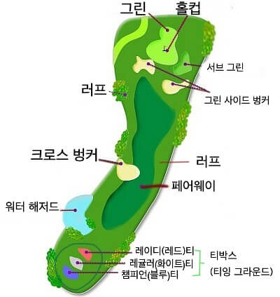 - 러프 : 잔디가 길고 울퉁불퉁, 공이 빠지면 어려운 구간
