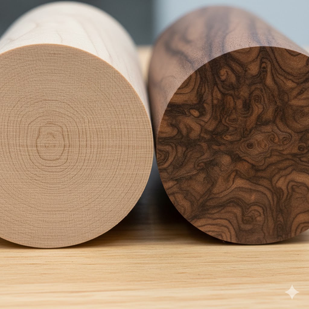 💡 2단계: 헤드 소재의 비밀 (단풍나무 vs 감나무를 넘어)