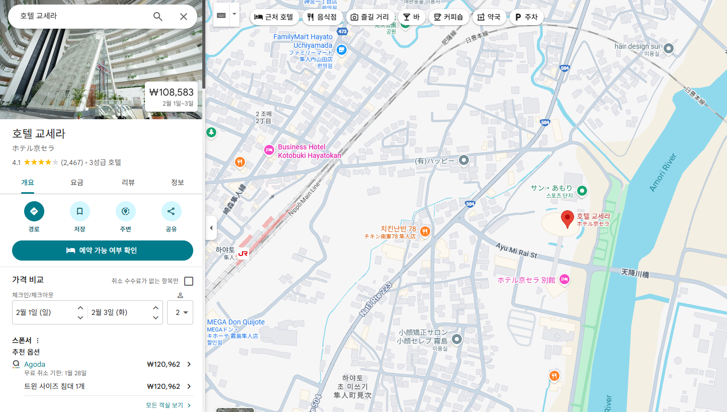 개인적으로는 기리시마 지역의 교세라 호텔이 가장 안정적으로 느껴졌어요.